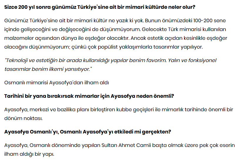 Osmanlı ve Selçuklu dönemlerinde mimari kimlik güçlü bir şekilde korunmuş olsa da, Cumhuriyet dönemi sonrasında Türkiye’de bu mirasın sürdürülemediğini belirten Akyüz, “Günümüz mimarisinin ne yazık ki Selçuklu ve Osmanlı mimarisi gibi kendine has bir tarzı ve çizgisi yok. Çünkü ne yasa ve yönetmeliklerde bu tip bir yönlendirme var, ne de kullanıcıların böyle bir beklentisi bulunuyor.” diye ekliyor.